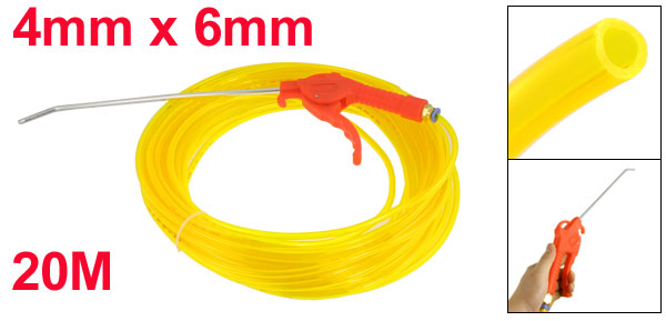Red Plastic Air Blow Gun + 20M 4mm x 6mm Clear Yellow Polyurethane Tube
