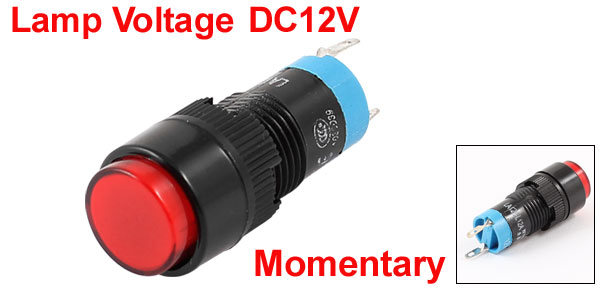Item Name Push Button Switch Contact Type Momentary SPST Working Voltage AC 250V 3A Light Color Red Lamp Voltage DC12V Mounting Thread Diameter 11mm / 0.43" Button Cap Dia 12mm /0.47" Terminals 2 Pin Overall Size 3.8 x 1.4cm/1.5" x 0.5"(L*D) Material Plastic, Electronic Parts Weight 4g Package Content 1 Pcs x Push Button Switch - Reviews