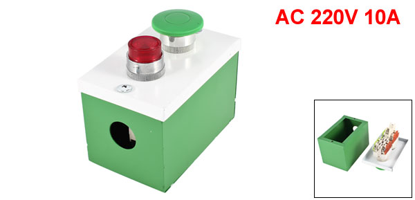 Product Name Push Button Switch Station Material Plastic, Metal Ui 660V Ith 10A Light Voltage AC 220V Round Push Button Switch Action Type Self Locking Mushroom Push Button Momentary Overall Size(not include button) 11 x 7.5 x 7.5cm/ 4.3" x 3" x3" (L*W*H) Button Diameter Push Button: 2.5cm/ 1" Rotary Button: 4cm/ 1.6" Color Red, Green, White Push Button Light Color Red Weight 310g Package Content 1 x Push Button Station - Reviews