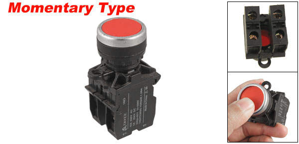 Product Name Push Button Switch Action Type Momentary Contact Type 1 NO(Normally Open) + 1 NC(Normally Close) Ui 500V Uimp 6KV Voltage AC 600V 10A DC 250V 1A Terminal Number 4 Panel Cutout Diameter 2.2cm / 0.87"(7/8") Fit Panel Thickness(Adjustable) Max 0.8cm / 0.27" Button Diameter 23mm/ 0.9" Overall Size 4.3 x 3 x 7cm/ 1.7" x 1.2" x 2.8" (L*W*H) Material Plastic, Electric Component Main Color Red, Black Net Weight 36g Package Content 1 x Push Button Switch - Reviews