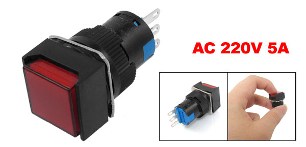 Red Square Momentary SPDT Push Button Switch AC 220V 5A
