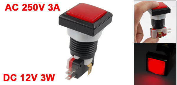 Red Square Push Button LED SPDT Momentary AC 250V 3A Micro Switch