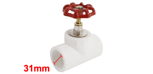 Product Name PPR Stop Valve Material PPR, Metal Main Color White, Red, Silver Tone Hole Inner Dia 31mm to 31mm Wheel Handle Dia 51mm/ 2" Body Size 80 x 43mm/ 3.1" x 1.7"(L*Max.W) Overall Height 100mm/ 3.9" Net Weight 148g Package Contents 1 x PPR Stop Valve - Reviews