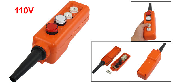 Product Name Hoist Pushbutton Switch Model No. COB COJ2021 Push Buttons Red, White LED Lamp, Up, Down Lamp Color Red, White Lamp Voltage 110V Main Body Size 20 x 5.8 x 6.5cm / 7.9" x 2.3" x 2.6"(L*W*H) Insulating Tube Length 10.2cm / 4" Fit Cable Diameter 1.1cm / 0.43" External Material Plastic, Rubber Color Orange Red,, Black Net Weight 307g Package Content 1 x Hoist Pushbutton Switch - Reviews