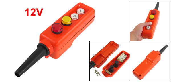 Product Name Hoist Pushbutton Switch Model No. COB COJ2001 Push Buttons Red/Yellow LED Signal Lamp, Up, Down Lamp Voltage 12V Main Body Size 20 x 5.8 x 6.5cm / 7.9" x 2.3" x 2.6"(L*W*H) Insulating Tube Length 10.2cm / 4" Fit Cable Diameter 1.1cm / 0.43" External Material Plastic, Rubber Color Orange Red, Black Net Weight 304g Package Content 1 x Hoist Pushbutton Switch - Reviews