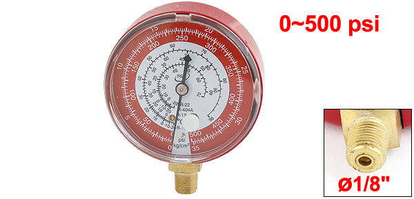 Refrigerant High Side Pressure Gauge Red 0 to 500 psi for R22 R12 R404A