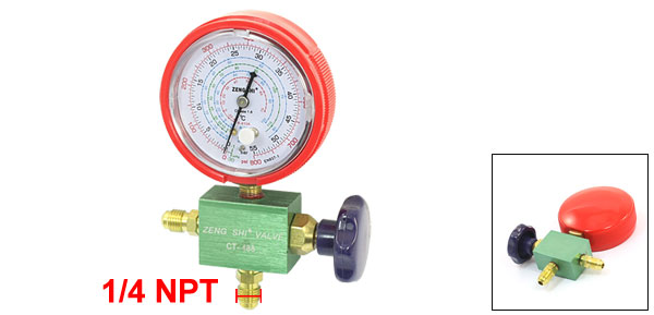 Product Name Single Manifold Gauge Type R410a Thread Diameter 11mm/1/4 NPT Guage Pressure Range 0-55Bar, 800psi Guage Size 7.7 x 3.5cm/3" x 1.4"(D*H) Total Size 14 x 10 x 4cm/ 5.5" x 1.6" x 1.6"(L*W*H) Color Red, Blue, Green, Clear Material Metal, Plastic Net Weight 301g Package 1 x Single Manifold Gauge - Reviews