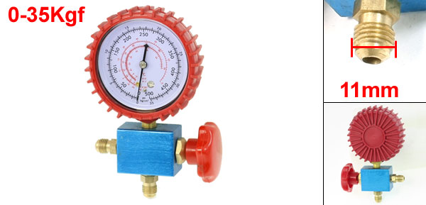 Product Name Single Manifold Gauge Model CT-467G Thread Diameter 11mm/1/4" NPT Guage Pressure Range 0-35Kgf/cm2, 500psi Guage Size 8 x 3.5cm/3.15" x 1.4"(D*H) Total Size 14 x 9 x 4.3cm/ 5.5" x 3.5" x 1.7"(L*W*T) Main Color Red, White, Turquoise, Gold Tone Material Metal, Plastic, Rubber Net Weight 321g Package 1 x Single Manifold Gauge - Reviews