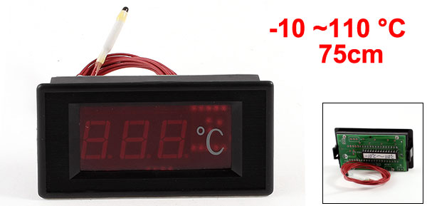 Product Name Digital Thermometer Temperature Range -10 ~ + 110 °C Precision ±1 °C Display Resolution 0.1°C Voltage DC 5 v Probe Size 25 x 4mm/ 1" x 0.16"(L*D) Size(Approx.) 7.8 x 4.2 x 1.2cm/ 3.1" x 1.7" x 0.5"(L*W*T) Cable Length 75cm / 29.5" Casing Material Plastic Color Black Weight 30g Package Contents 1 × Digital Thermometer - Reviews