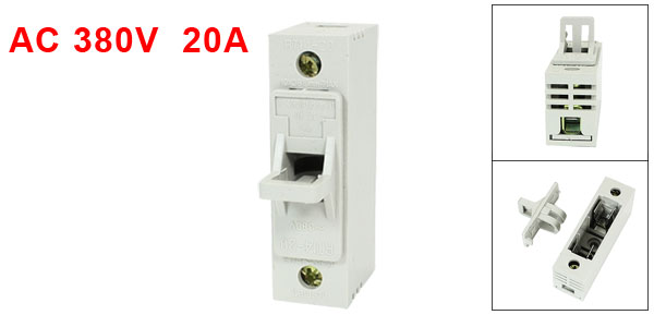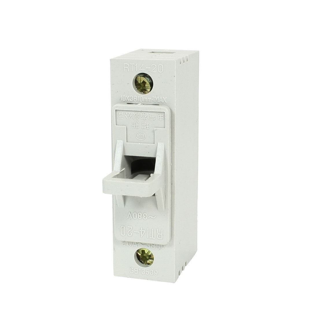 Product Name Fuse Holder Type RT14-20A Fit Fuse Type 10 x 38mm / 0.394" x 1.496"(D*H)(Not Included Here) Rated Voltage AC 380V Rated Current 20A Poles Quantity 1 Material Hard Plastic & Metal Color See the Picture Overall Size(Approx) 6.9 x 2 x 4.6cm / 2.7" x 0.8" x 1.8"(L*W*H)