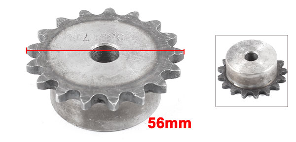 Product Name Sprocket Model NO. 35B17T Material Metal Color Gray Teeth Number 17 Inner Hole Diameter 10mm / 0.39" Outer Shank Dia 40mm/1.6" Tooth Nom. Thickness 4.4mm/0.17" Overall Size 56 x 20mm/2.2" x 0.79"(Max.Dia*H) Net Weight 207g Package Content 1 x Sprocket(Non-OEM) - Reviews