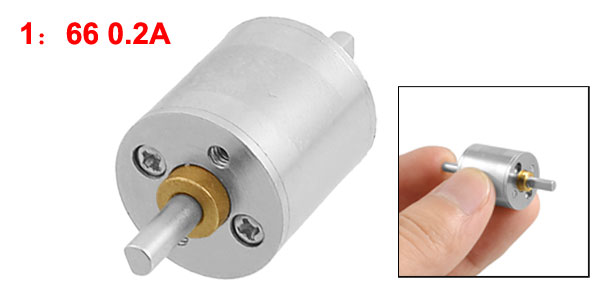 Product Name Motor Reducer Speed Ratio 1:66 Current 0.2A Shaft Size 3 x 12mm/ 0.12" x 0.48"(D*H) Body Size 16 x 17mm/ 0.68" x 0.64"(D*H) Total Length(Approx.) 37mm / 1.5" Material Metal, Electronic Parts Color Silver Tone Weight 17g Package Content 1 x Motor Reducer  - Reviews