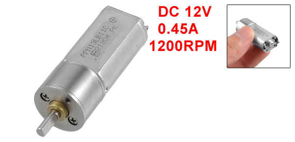 Product Name DC Geared Motor Model Type 16GA Voltage DC 12V Current 0.45A Speed 1200RPM Shaft Size 3 x 12mm/ 0.12" x 0.46"(D*H) Body Size 16 x 40mm / 0.63"x 1.6"(Max.D*H) Total Length 52mm / 2" Main Color Silver Tone Main Material Metal Weight 28g Package 1 x DC Geared Motor - Reviews