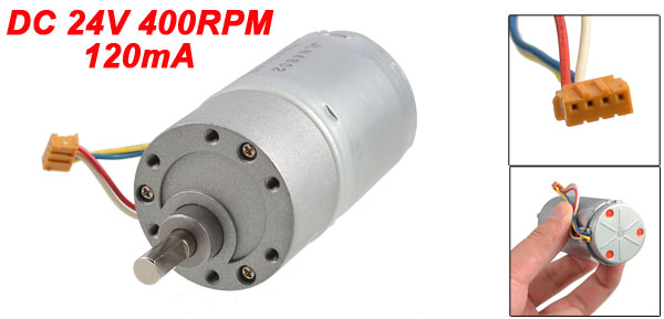 Product Name DC Geared Motor Model Type 37GB Rated Voltage DC 24V Current 120mA Speed 400RPM Shaft Size 6 x 13mm/ 0.24" x 0.51"(D*H) Cable Length 65mm/ 2.6" Body Size 37 x 71mm / 1.4" x 2.8"(Max.D*H) Total Length 93mm / 3.7" Main Color Silver Tone, Red, Yellow, White, Teal Blue Main Material Metal, Plastic Weight 236g Package 1 x DC Geared Motor - Reviews