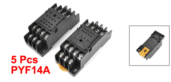 Product Name Relay Socket Base Model PYF14A Fit for HH54P, MY4 Pin Number 14 Fixing Hole Size 5 x 4.2mm/0.197" x 0.165"(L*W) Installing Rail Size Standard 35mm Mounting Rail Total Size (Approx.) 74 x 30 x 30mm/ 2.9" x 1.2" x 1.2"(L*W*T) Main Color Black Material Plastic, Metal Weight 224g Package Content 5 x Relay Socket Base - Reviews