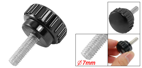 Product Name Knurled Knob Type Screw On Head Diameter 26mm / 1.02" Thread Length 30mm / 1.18" Thread Diameter 7mm / 0.27" Total Height 47mm / 1.85" Material Metal & Plastic Color Silver Tone & Black Weight 22g Package Content 1 x Knurled Knob - Reviews