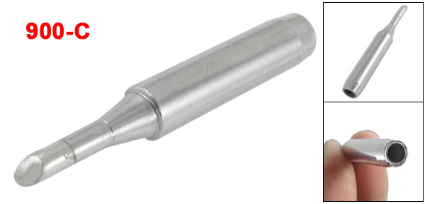 DetailsReplaceable 3.6mm Bevel Width Soldering Iron Tip 900-C  Product Name Soldering Iron Tip Model 900-C Material Metal Design Bevel Total Length 4.2cm / 1.65" Shank Inner Dia. 4mm / 5/32" Shank Outer Dia. 6.2mm / 0.24" Bevel Tip Width 3.6mm / 0.14" Color Silver Tone Weight 6g Package Content 1 x Soldering Iron Tip