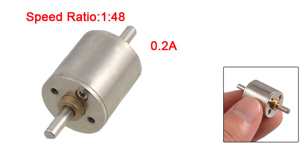 Product Name Motor Reducer Speed Ratio 1:48 Current 0.2A Shaft Size 3 x 12mm/ 0.12" x 0.48"(D*H) Body Size 16 x 17mm/ 0.68" x 0.64"(D*H) Total Length(Approx.) 37mm / 1.5" Material Metal, Electronic Parts Color Silver Tone Weight 17g Package Content 1 x Motor Reducer - Reviews