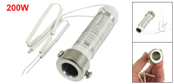 Product Name Soldering Heating Element Core Working Voltage 220V Power 200W Electrical Strength 1500V 50Hz Body Size 8.7 x 2.8cm/ 3.4" x 1.1"(L*Max.D) Cable Length 23cm/ 9.1" Material Metal Color White, Silver Tone Net Weight 83g Package Content 1 x Soldering Heating Element Core - Reviews