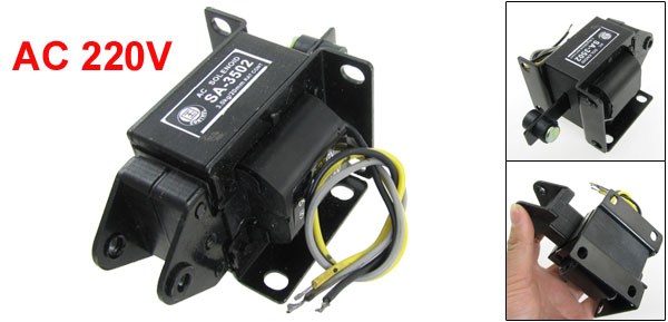 Product Name AC Solenoid Electromagnet Type SA-3502 Material Metal Color Black Action Form Pull Type Voltage AC 220V Force 3.0kg Stroke 20mm Duty 50 Hz or 60 Hz Mounting Hole Size 9 x 7mm/0.35" x 0.27"(L*W) Size 13 x 6 x 7.1cm/5.1" x 2.3" x 2.8"(L*W*H) Connect Cable Length 20cm/7.9" Net Weight 1030g Package Content 1 x AC Solenoid Electromagnet - Reviews