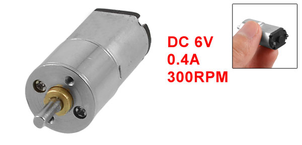 Product Name DC Geared Motor Model Type 16GA Rated Voltage DC 6V Current 0.4A Speed 300RPM Shaft Size 3 x 12mm/ 0.12" x 0.45"(D*H) Body Size 16 x 34mm / 0.63"x 1.3"(Max.D*H) Total Length 44mm / 1.7" Main Color Silver Tone Main Material Metal Weight 21g Package 1 x DC Geared Motor - Reviews