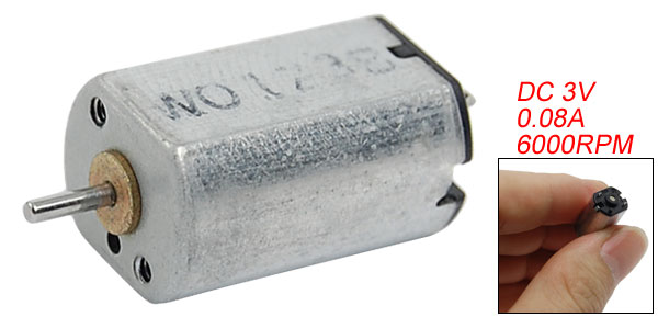 Product Name DC Motor Rated Voltage DC 3V Rated Current 0.08A Speed 6000RPM Shaft Diameter 1mm / 0.078" Shaft Length 5mm / 0.393" Body Size 16 x 8 x 10mm / 0.63" x 0.315" x 0.393"(L*W*T) Total Length 20mm / 0.787" Main Color Silver Tone Material Metal Weight 5g Package 1 x DC Motor - Reviews