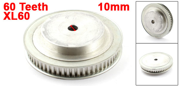 Product Name Timing Pulley Type XL60 Number of Teeth 60 Pitch 5.08mm/ 0.2" Overall Size 103 x 25mm/ 4" x 1"(D*H) Top Diameter 65mm/2.5" Side Lug Diameter 95mm/3.7" Bore Diameter 10mm/ 0.4" Fit Belt Width 11mm/0.43" Material Aluminum Color Silver Tone Weight 421g Package Content 1 x Timing Pulley - Reviews
