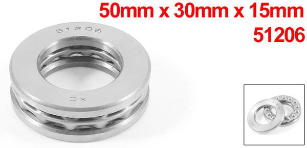 Product Name Thrust Ball Bearing Type 51206 Direction Single Material Carbon Steel Outer Diameter 50mm / 1.97" Inner Diameter 30mm/ 1.18" Thickness 15mm/ 0.59" Main Color Silver Tone Weight 127g Package Content 1 x Thrust Ball Bearing - Reviews
