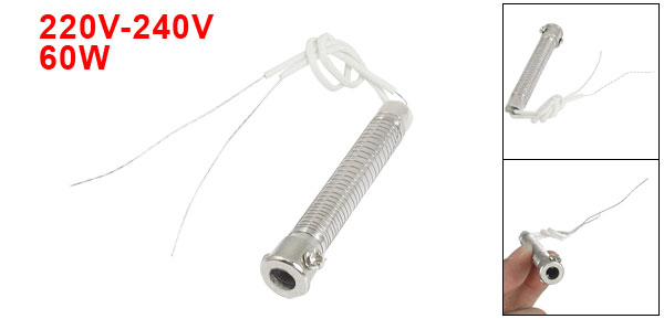 DetailsReplacement 60W Metal Heating Element Core for Soldering Iron  Product Name Soldering Heating Element Core Working Voltage 220V-240V Power 60W Body Size 6.4 x 1.1cm/ 2.5" x 0.4"(L*Max.D) Cable Length 14cm/ 5.5" Material Metal Color White, Silver Tone Net Weight 10g Package Content 1 x Soldering Heating Element Core