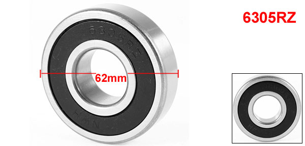 Product Name Deep Groove Ball Bearing Type 6305RZ Material Carbon Steel, Rubber Outer Diameter 62mm / 2.4" Inner Diameter 25mm / 1" Thickness 17mm / 0.6" Color Silver Tone, Black Weight 224g Package Content 1 x Deep Groove Ball Bearing - Reviews