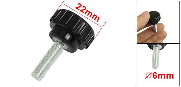 Product Name Grip Knob Type Screw On Head Diameter 22mm / 0.87" Male Thread Length 20mm / 0.79" Male Thread Diameter 6mm / 0.24" Total Height 34mm / 1.3" Material Metal, Plastic Color Silver Tone, Black Weight 11g Package Content 1 x Grip Knob - Reviews