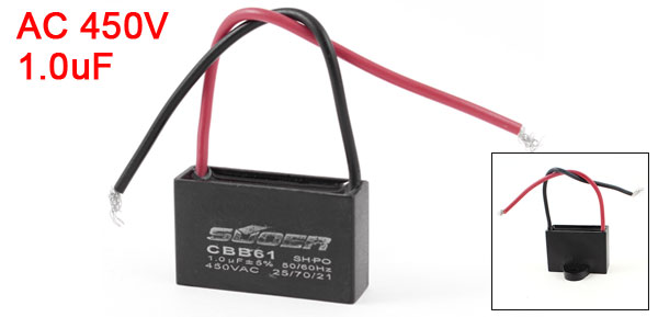 Terminal Wire Ambient Temperature 25/70/21 Rated Capacitance 2uF Tolerance +/- 5% Rated Frequency 50/60Hz Rated Voltage 450V AC Body Size 3.8 x 2.2 x 1.7cm / 1.5" x 0.9" x 0.7" (L*W*H) Wire Length 9cm / 3.5" Install Bore Diameter 0.5cm / 0.197" Main Color Black, Red Weight 19g Package Content 1 x Motor Run Capacitor - Reviews