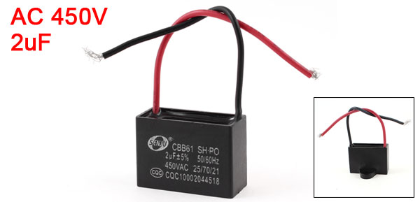 Terminal Wire Ambient Temperature 25/70/21 Rated Capacitance 2uF Tolerance +/- 5% Rated Frequency 50/60Hz Rated Voltage 450V AC Body Size 3.8 x 2.7 x 1.7cm / 1.5" x 1.1" x 0.7" (L*W*H) Wire Length 9cm / 3.5" Install Bore Diameter 0.5cm / 0.197" Main Color Black, Red Weight 19g Package Content 1 x Motor Run Capacitor - Reviews