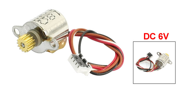 Product Name Micro Stepper Motor Rated Voltage DC 6V Gear Size 5 x 3mm/ 0.2" x 0.12"(D*T) Overall Length 17mm / 0.67" Body Size 10 x 10mm / 0.4" x 0.4"(L*D) Mounting Hole Diameter 2mm/ 0.08" Wire Length 10.5cm/ 4.1" Main Color Silver Tone, Gold Tone Main Material Metal Weight 5g Package 1 x Micro Stepper Motor - Reviews