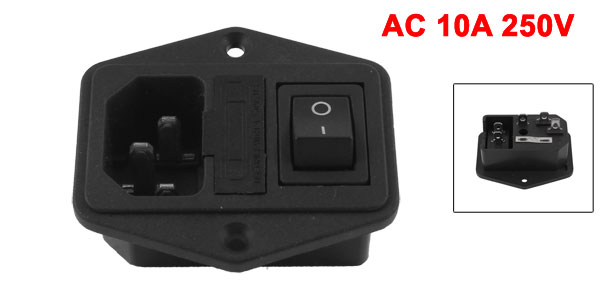 Replacement IEC C13 3Pin Black Fused Power Socket w Switch AC 10A 250V