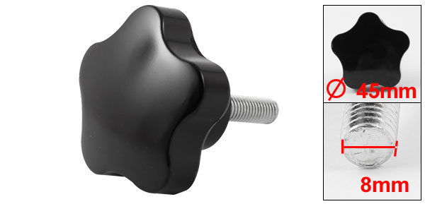 Product Name Clamping Knob Type Screw On Head Diameter 45mm / 1.8" Thread Length 30mm / 1.2" Thread Diameter 8mm / 0.31" Total Height 45mm / 1.8" Material Metal, Plastic Color Silver Tone, Black Weight 20g Package Content 1 x Clamping Knob - Reviews