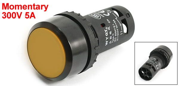 Item Name Push Button Switch Action Type Momentary Contact Type DPST Button Color Yellow Ui 300V Ith 5A Mount Hole Diameter 22mm / 0.87" Fit Panel Thickness(Adjustable) Max 6mm / 0.24" Size 55 x 30mm/ 2.2" x 1.2“(L*D) Material Plastic, Metal Weight 21g Package Content 1 x Push Button Switch - Reviews