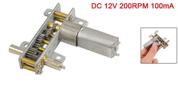Product Name DC Geared Motor Model Type 13GB Rated Voltage DC 12V Current 100mA Speed 200RPM Shaft Size 6 x 15mm/ 0.24" x 0.59" (D*H) Total Size 6 x 1.5 x 7cm / 2.4" x 0.59" x 2.7" (L*W*H) Main Color Silver Tone Main Material Metal Weight 66g Package 1 x DC Geared Motor - Reviews