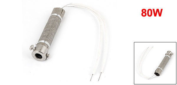 Product Name Heating Element Core Main Material Metal Power 80W Dimension 7 x 2cm/ 2.8" x 0.8"(L*Max.D) Wire Length 14cm/ 5.5" Color White, Silver Tone Weight 22g Package Content 1 x Soldering Iron Heating Element Cores - Reviews