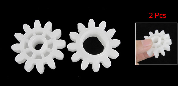 Product Name Spur Gear Material Propene Polymer Color White Teeth Number 12 Size 4.4 x 1cm / 1.7" x 0.4"(D*H) Diameter Big: 1.9cm / 0.75" Small: 1cm / 0.4" Weight 18g Package Content 2 x Spur Gear - Reviews