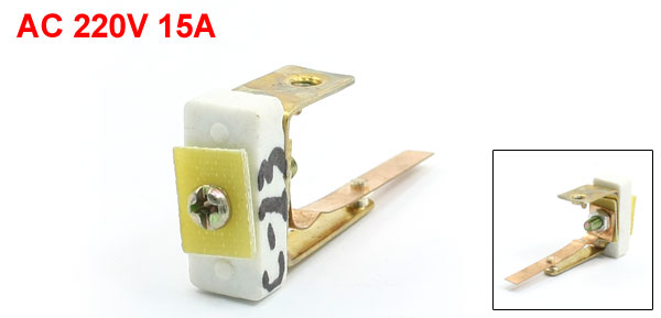 Product Name Bimetal Thermostat Controller Fit for Electric Cooker Power AC220V 15A Screw Hole Diameter 3.5mm/ 0.14" Overall Size 5.3 x 2.5 x 1.1cm/ 2.1" x 1" x 0.43"(L*W*T) Material Metal, Ceramic Color Gold Tone, Silver Tone, White Weight 13g Package Content 1 x Bimetal Thermostat Controller - Reviews