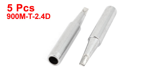 DetailsReplacement Solder Screwdriver Welding Soldering Iron Tip 900M-T-2.4D 5Pcs  Main Color Silver Tone Hole Inner Diameter 4mm / 0.16" Brand DMiotech Net Weight 32g Total Length 43mm/1.7" Country of Manufacture CHINA Model 900M-T-2.4D Package Content 5 x Soldering Iron Tips Material Metal Chisel Width 2.4mm / 0.094" Tip Part Length 17mm/0.67" Shank Outter Diameter 6mm / 0.24"