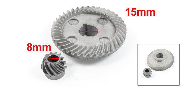 19 x 8 x 15mm/ 0.7" x 0.3" x 0.6"(Outside Dia.*Inner Dia.*T) Color Silver Tone Gray Net Weight 172g Package Content 1 x Spiral Bevel Gear Set - Reviews