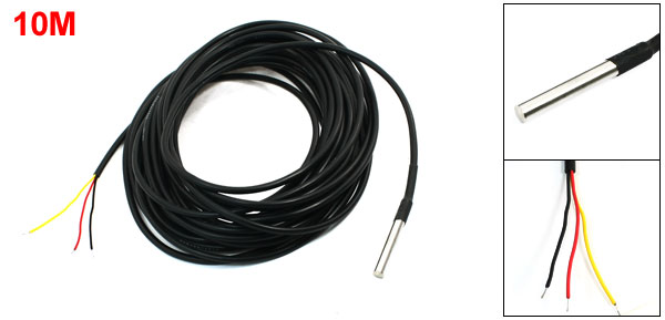 Product Name Thermal Sensor Probe Model DS18B20 Probe Size 6 x 50mm/ 0.24" x 2" (D*L) Cable Length 10Meter/ 32.8Ft External Material Plastic, Metal Main Color Black Weight 190g Package Content 1 x Thermal Sensor Probe - Reviews
