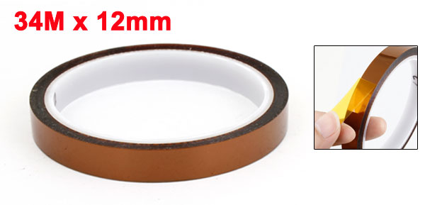 Product Name High Temperature Resistant Tape Material Polyimide Film, Silicone Adhesive Color Amber Color Width 12mm / 0.47" Total Length 34M / 111.5ft Withstand Temperature Range 260°C Type Roll Type Total Size 94 x 12mm / 3.7" x 0.47"(D*T) Weight 35g Pakage Content 1 x High Temperature Resistant Tape - Reviews