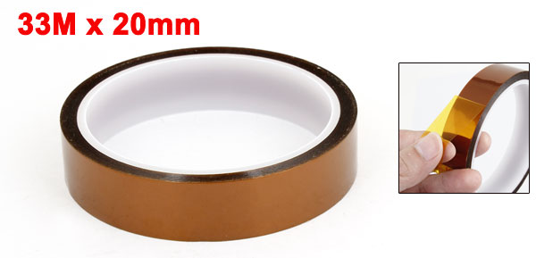 Product Name High Temperature Resistant Tape Material Polyimide Film, Silicone Adhesive Color Amber Color Width 20mm / 0.39" Total Length 33M / 108ft Withstand Temperature Range 260°C Type Roll Type Total Size 93 x 20mm / 3.66" x 0.79"(D*T) Weight 50g Pakage Content 1 x High Temperature Resistant Tape - Reviews