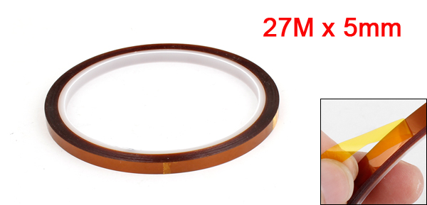 Product Name High Temperature Resistant Tape Material Polyimide Film, Silicone Adhesive Color Amber Color Width 5mm / 0.2" Total Length 27M / 88.6ft Withstand Temperature Range 260°C Type Roll Type Total Size 93 x 5mm / 3.66" x 0.2"(D*T) Weight 23g Pakage Content 1 x High Temperature Resistant Tape - Reviews