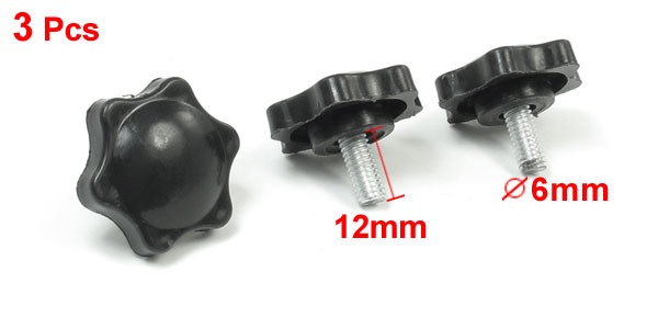 Product Name Star Knob Type Screw On Head Diameter 31mm / 1.22" Thread Length 12mm / 0.47" Thread Diameter 6mm / 0.24" Total Height 24mm / 0.94" Material Metal & Plastic Color Silver Tone & Black Weight 24g Package Content 3 x Star Knob - Reviews