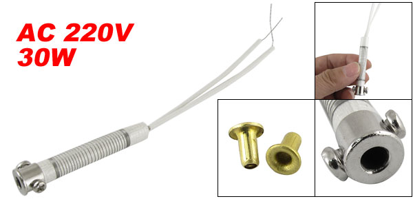 Product Name Soldering Iron Heating Core Main Material Metal, Nylon Voltage AC 220V 50Hz Insulation Resistance >100M Ω Power 30W Dimension 5.4 x 0.8cm/ 2.12" x 0.31"(L*D) Wire Length 11.5cm/ 4.5" Color White, Silver Tone Weight 8g Package Content 1 x Soldering Iron Heating Core - Reviews