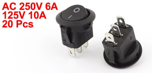 Main Color Black Product Name Rocker Switch Pins 3 Brand DMiotech Net Weight 97g Country of Manufacture CHINA Mounting Size 18 x 12mm / 0.7" x 0.5" (L*W) Package Content 20pcs x Rocker Switch Rating AC 250V 6A 125V 10A Material Plastic, Metal Contact Type SPST, 2 Position (ON-OFF) Total Size 29 x 23mm / 1.1" x 0.9" (L*W) - Reviews